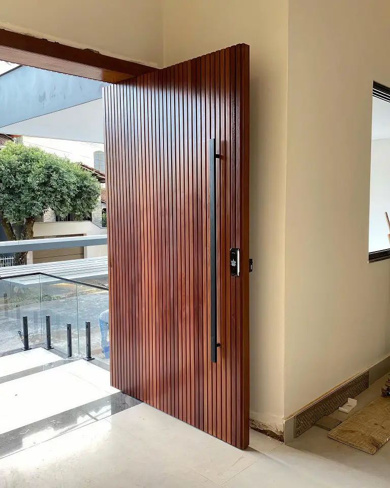 As portas da linha Gold são desenvolvidas com perfis robustos em alumínio, ideais para projetos que exigem sofisticação, resistência e ótimo desempenho estrutural. Indicadas tanto para áreas internas quanto externas. Possuem vedação eficiente, design moderno e permitem aplicação de vidros laminados ou temperados. São compatíveis com fechaduras de embutir, puxadores personalizados e diversos tipos de acabamento, incluindo pintura eletrostática ou anodização. A linha Gold oferece excelente desempenho acústico e térmico, sendo uma escolha premium para residências e ambientes comerciais de alto padrão.